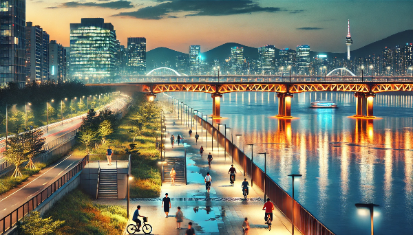 • 여의도 한강공원 코스: 고층 빌딩과 노을, 그리고 밤의 야경이 한 화면에 들어옵니다.